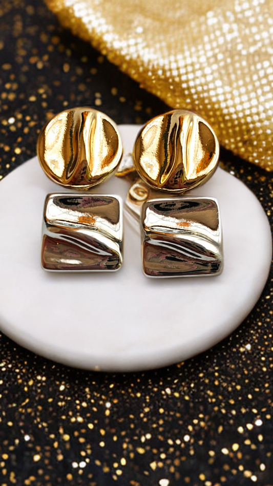Product Description: Elevate your jewelry collection with the Dual Dangle Earrings, featuring a chic mix of silver and gold tones. Crafted in high-quality stainless steel, these geometric earrings combine a sleek round stud with a modern square drop for the perfect balance of elegance and edge. Lightweight, hypoallergenic, and tarnish-resistant,...