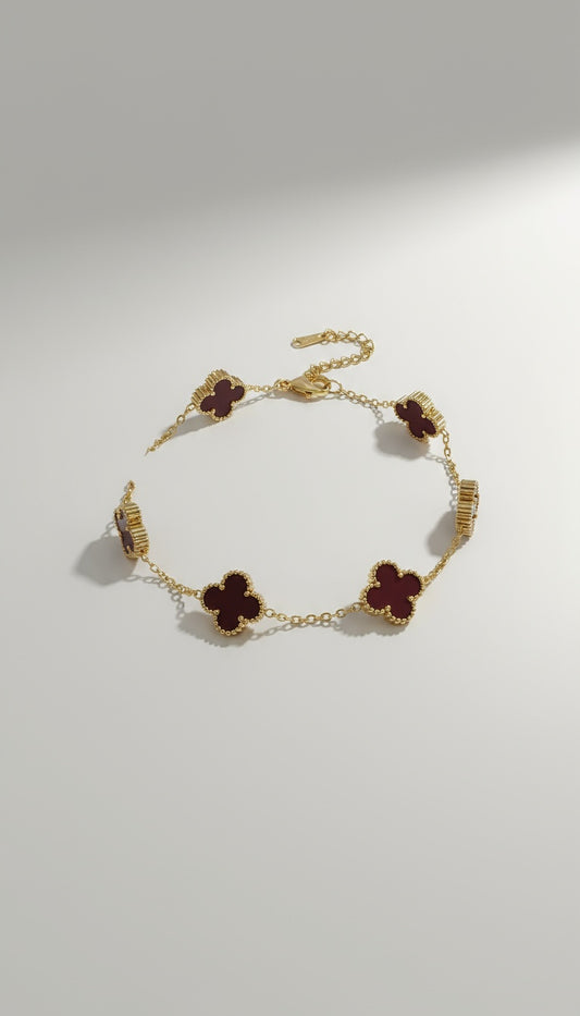 Graceful and understated, the Burgundy Clover Bracelet features a deep, rich hue symbolizing poise and strength. Crafted in durable stainless steel, this piece balances sophistication with simplicity, making it perfect for refined, everyday elegance. Styling Tip:Pair it with neutral outfits or gold-toned accessories for a subtle yet classy pop of...