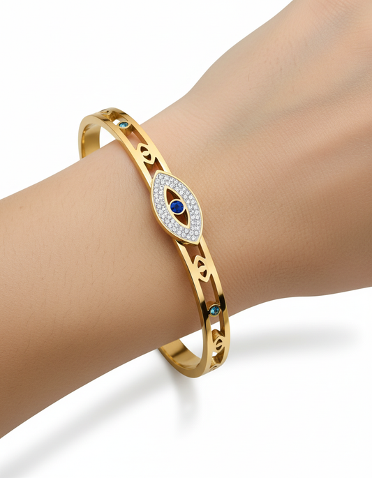 Product Description Embrace protection with timeless style through the S-Classic Evil Eye Bangle Bracelet. Designed with the iconic evil eye symbol, this elegant bangle is believed to ward off negative energy while adding a chic statement to your everyday look. Crafted for comfort and durability, it’s perfect for daily wear,...