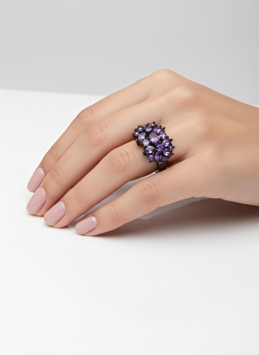This Purple Rhinestone Ring features a rich purple sparkle set in polished copper. Elegant yet bold, it adds a pop of color to your outfit while maintaining a classic charm. Ideal for evening wear, festive looks, and stylish gifting. Size 8 Styling Tip:Pair with neutral or lavender outfits to enhance...