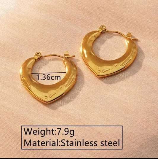 Waterproof heart hoop earrings for women in 18K gold stainless steel. Tarnish-free, long-lasting, and perfect for daily wear. Product Description Crafted for everyday elegance, our 18K Gold Waterproof Heart Hoop Earrings offer the perfect mix of durability and charm. The premium stainless-steel base ensures these earrings remain tarnish-free, hypoallergenic, and...