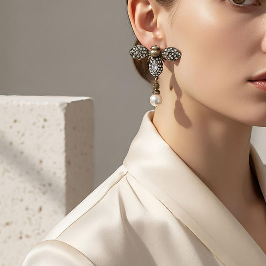 Vintage-inspired fly-shaped dangle earrings fully studded with rhinestones — a high-end retro look perfect for special occasions. Product Description These vintage fly-design dangle earrings are completely encrusted with rhinestones, giving a high-fashion retro appeal. Unique, glamorous, and ultra-stylish, they’re perfect for fashion-forward women who love standout accessories. Styling Tip Match...