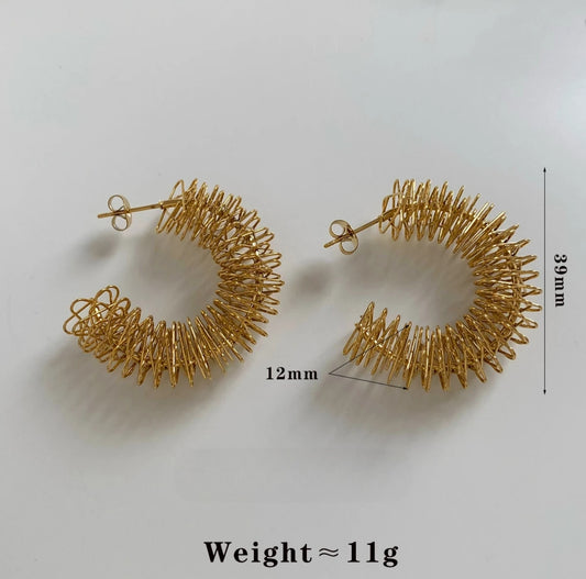Product Description: The Twist & Shine Hoops bring together the clean lines of minimalism with a dash of vintage artistry. Crafted from durable stainless steel and luxuriously plated in 18K gold, these C-shaped hoops feature a unique spring twist design that plays with light and texture. Their irregular silhouette offers...