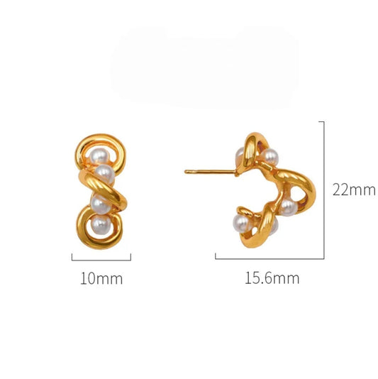 Product Description:The Pearl Twist Hoops are a perfect fusion of retro elegance and modern minimalism. Crafted from high-quality stainless steel and plated in luxurious 18K gold, these C-shaped hoops feature a graceful twirled design that wraps around a luminous pearl at the center. Their versatile style makes them suitable for...
