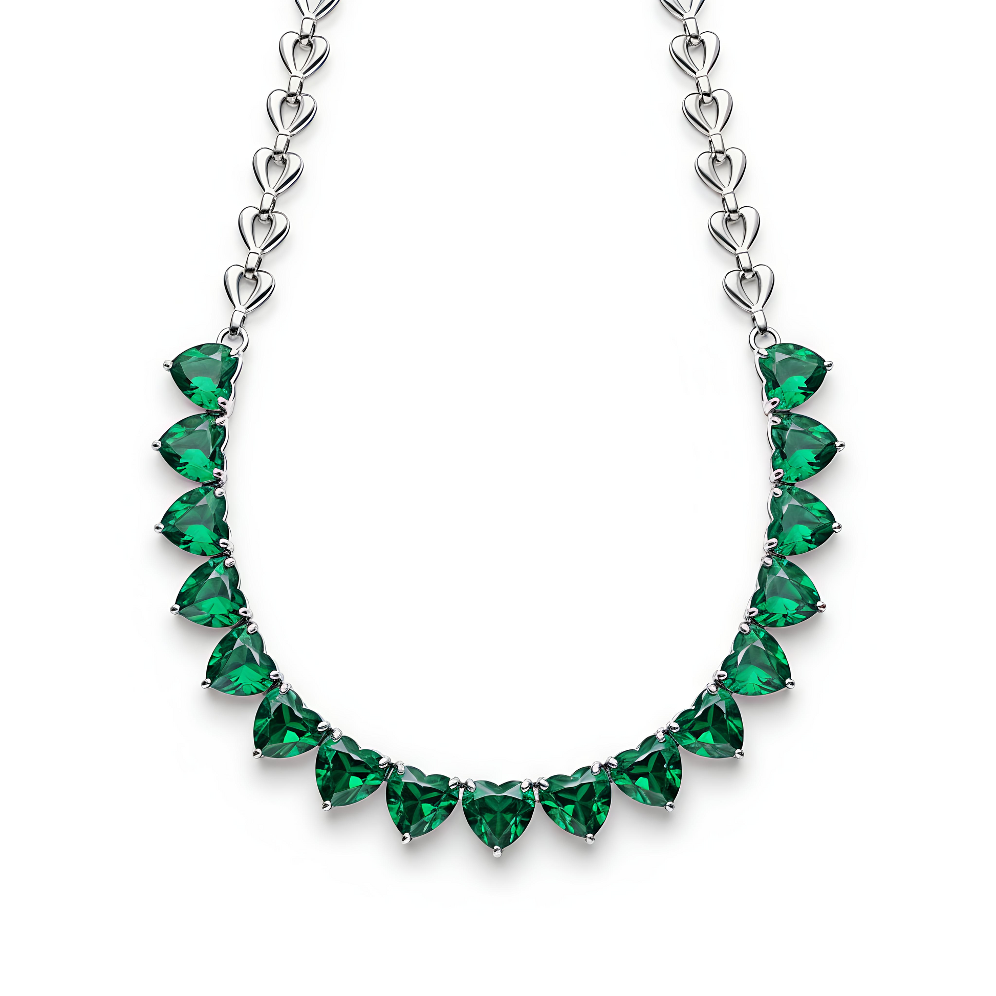 316L Stainless Steel - Silver Plated Green Zirconia Heart Necklace with Multi-Emerald Zirconia Swan Studs