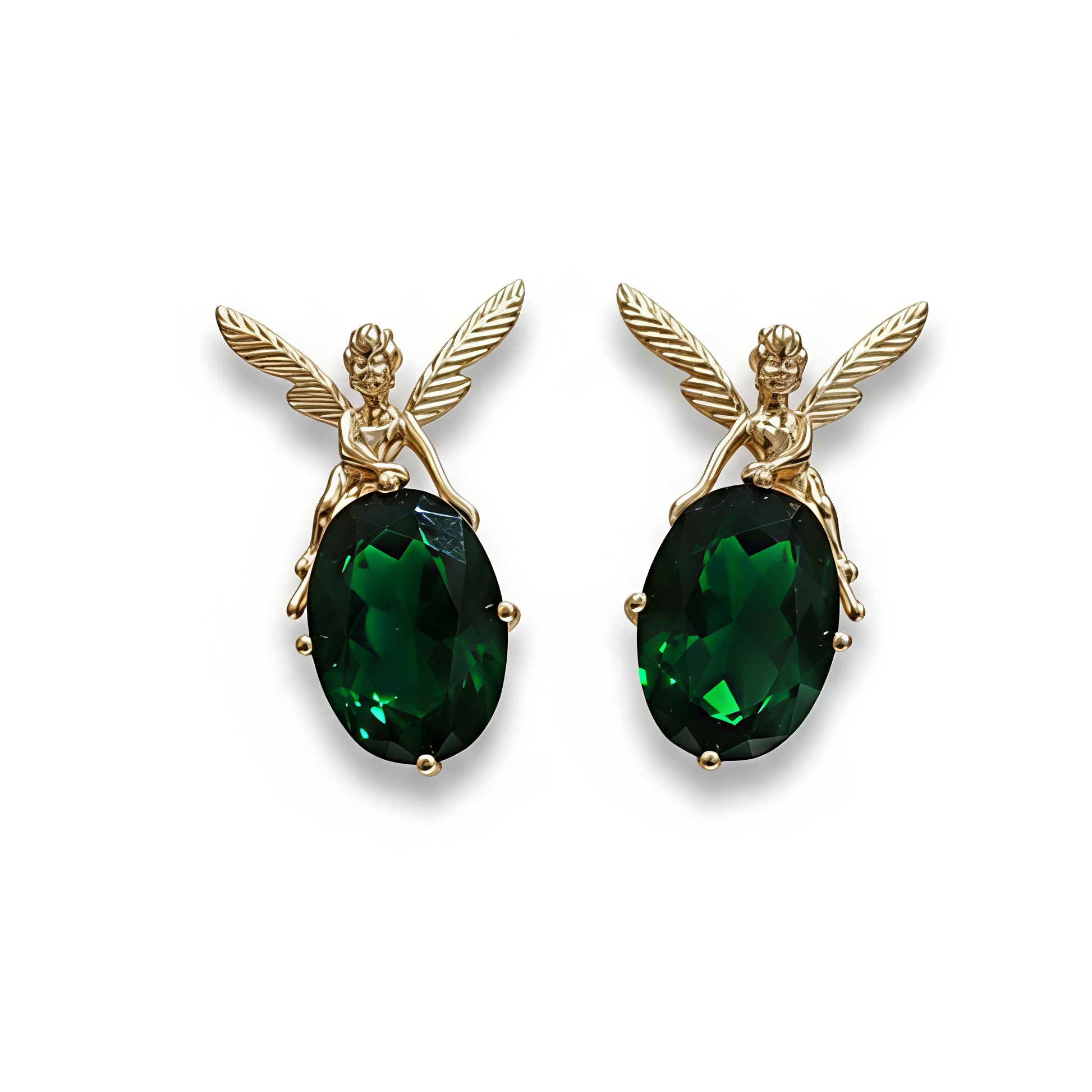 Emerald Angel Stud Earrings | Stainless Steel with Gold Plating