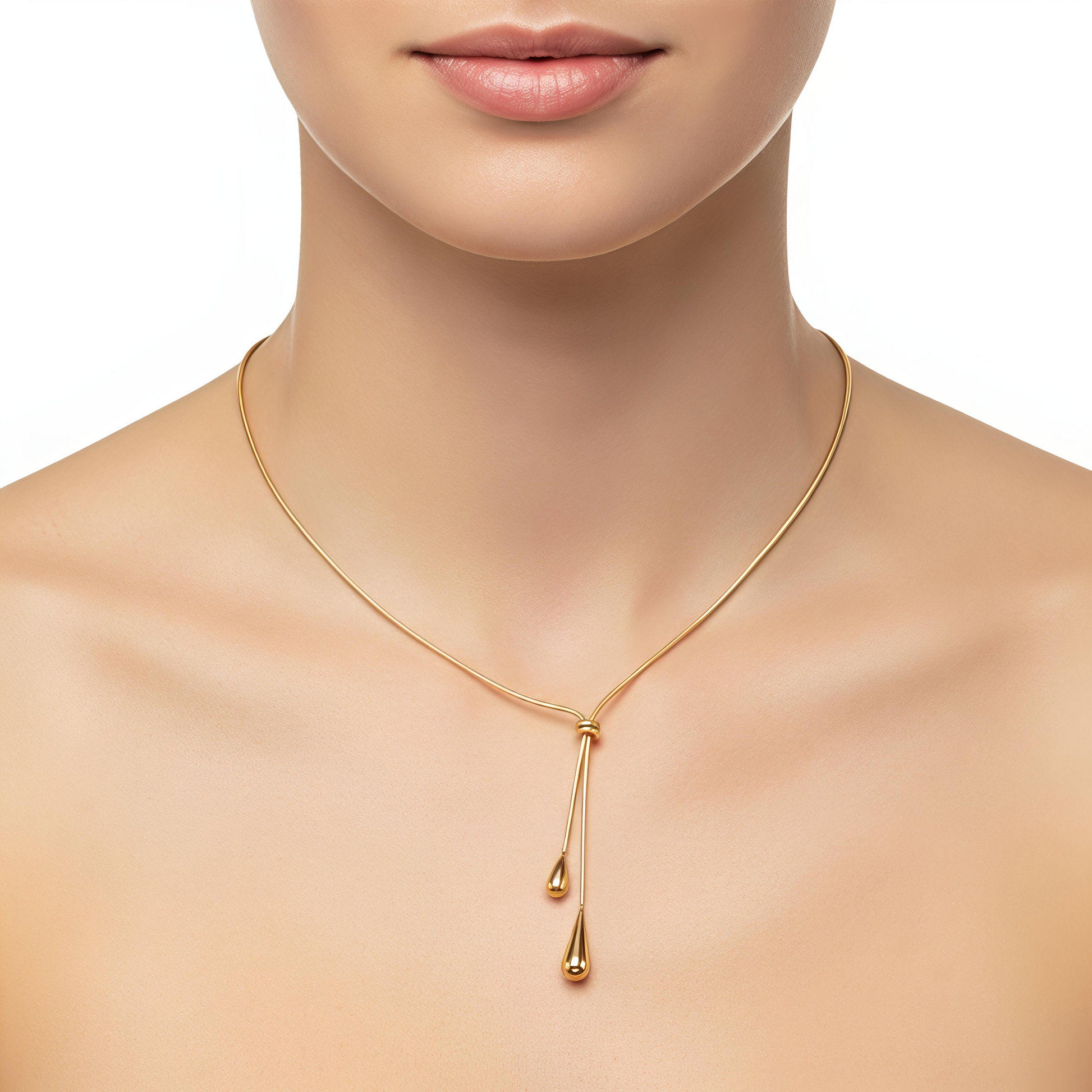 Sleek, stylish, and made to shine — Elegant Necklace is the perfect balance of minimal elegance and everyday glam. Crafted from high-quality stainless steel and finished in radiant 18K gold, this drop-style necklace adds a soft, feminine touch to any outfit.
