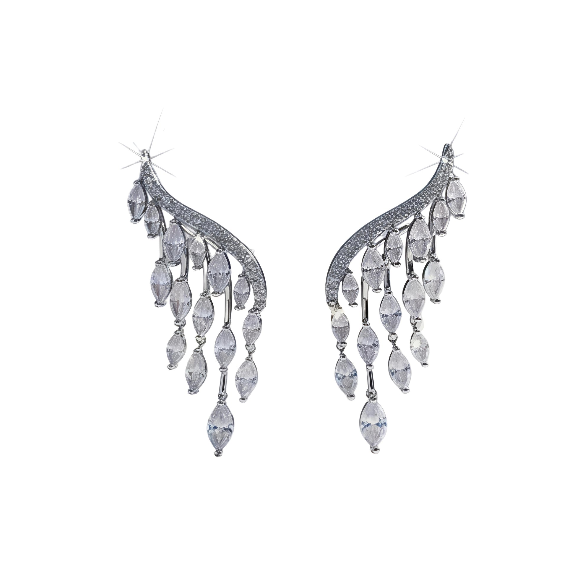 Luxury Sundrop earrings feature beautifully cut marquise cubic zirconia arranged to create maximum sparkle. Their elongated dangle silhouette adds graceful movement, making them perfect for weddings, evening events, or any glamorous occasion.