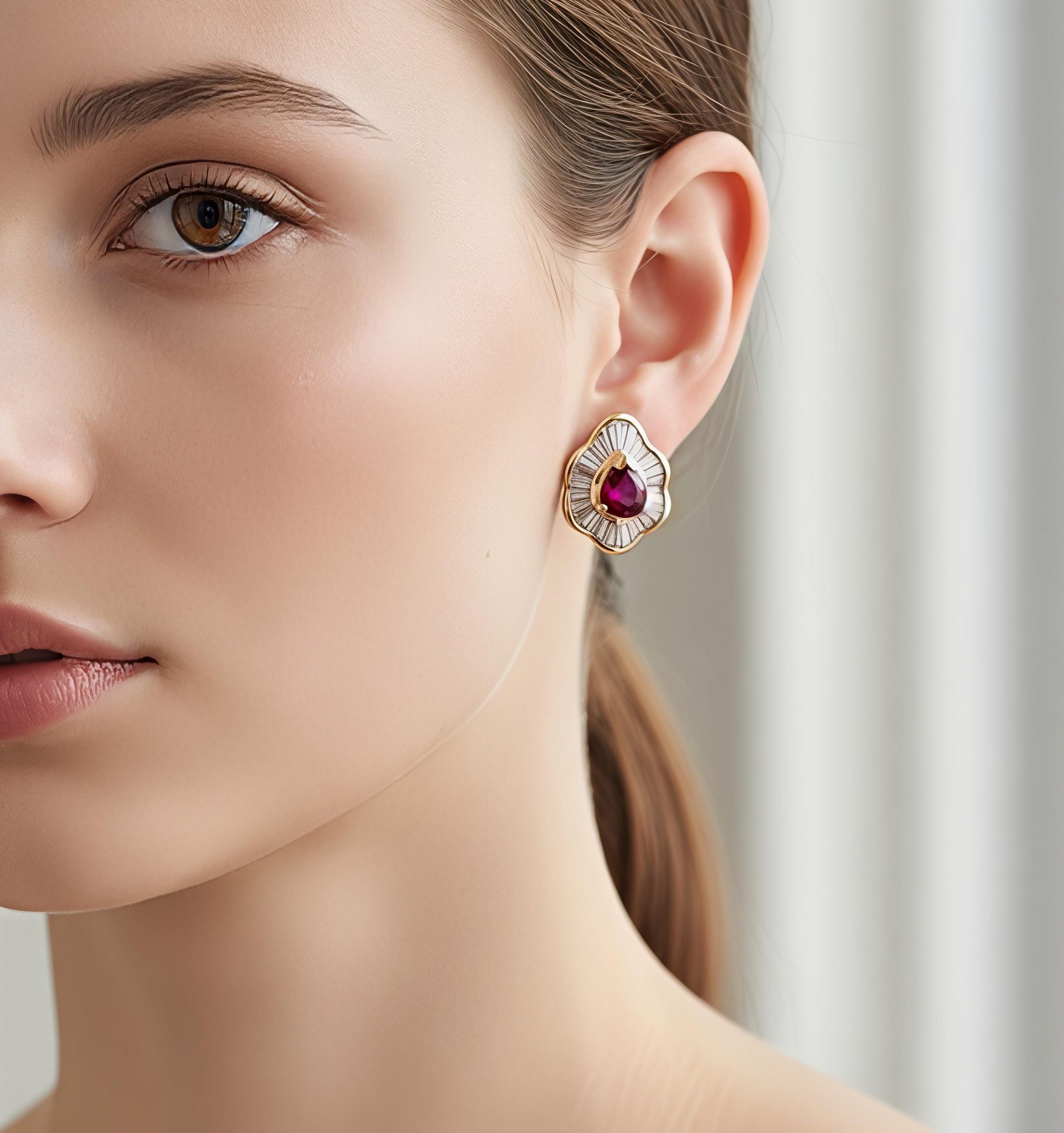 Red zircon earrings, statement earrings for women, luxury Valentine’s gift jewelry.